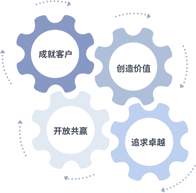 成就客户是一切决策的出发点,创造价值是衡量所有工作的标准,追求卓越是bjl平台做事做人的态度,开放共赢是bjl平台的格局也是最终的结果。价值观的齿轮环环相扣,推动着组织里的每个人不断向前。